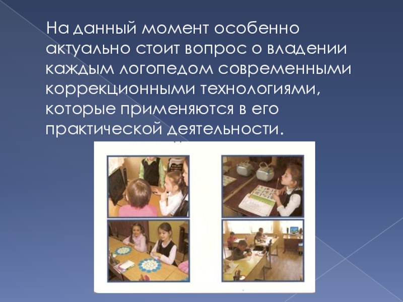 На данный момент особенно актуально стоит вопрос о владении каждым логопедом современными коррекционными технологиями, которые применяются в его практической деятельности.