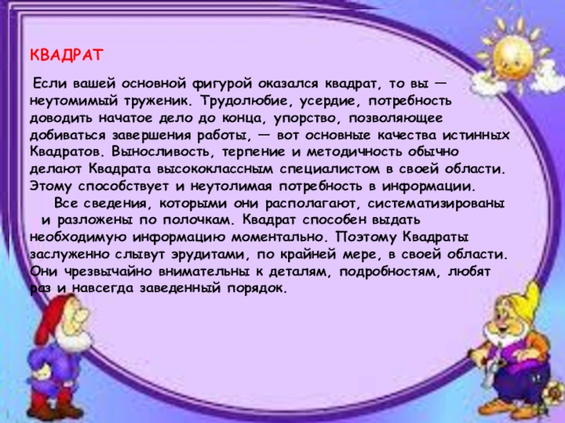 Их раздражают четкие вертикальные и горизонтальные связи, строго фиксированные обязанности и постоянные способы работы. В работе им требуется независимость от других и высокий уровень стимуляции на рабочем месте. Тогда Зигзаг «оживает» и начинает выполнять свое основное назначение — генерировать новые идеи и методы работы.