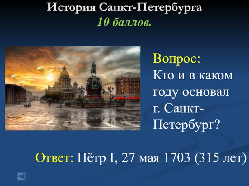 Ответ: Пётр I, 27 мая 1703 (315 лет)