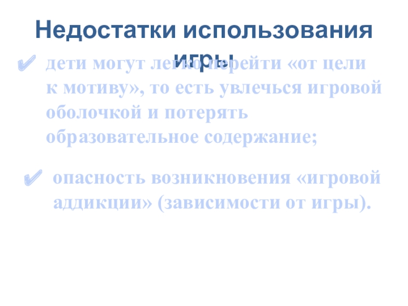 опасность возникновения «игровой аддикции» (зависимости от игры).