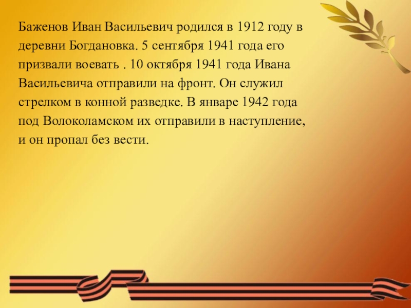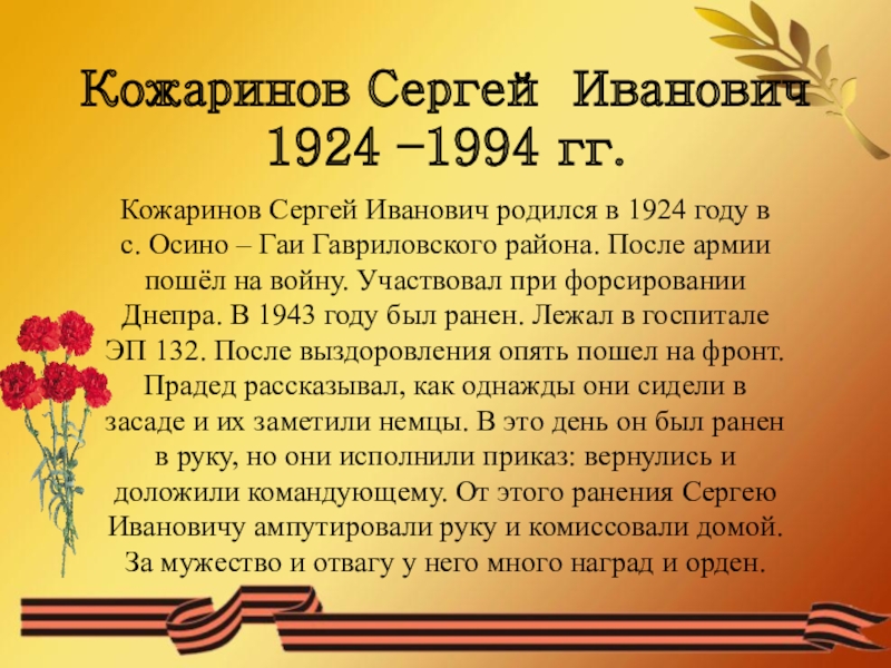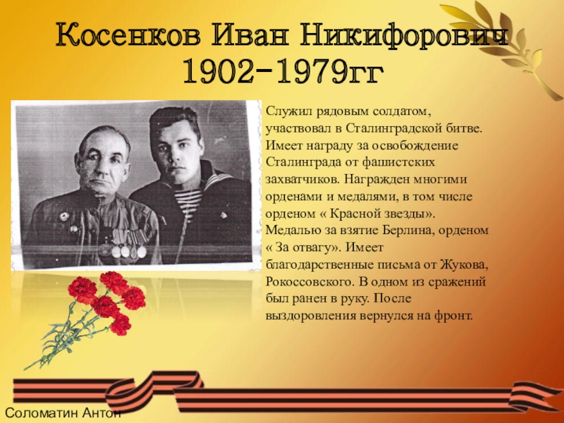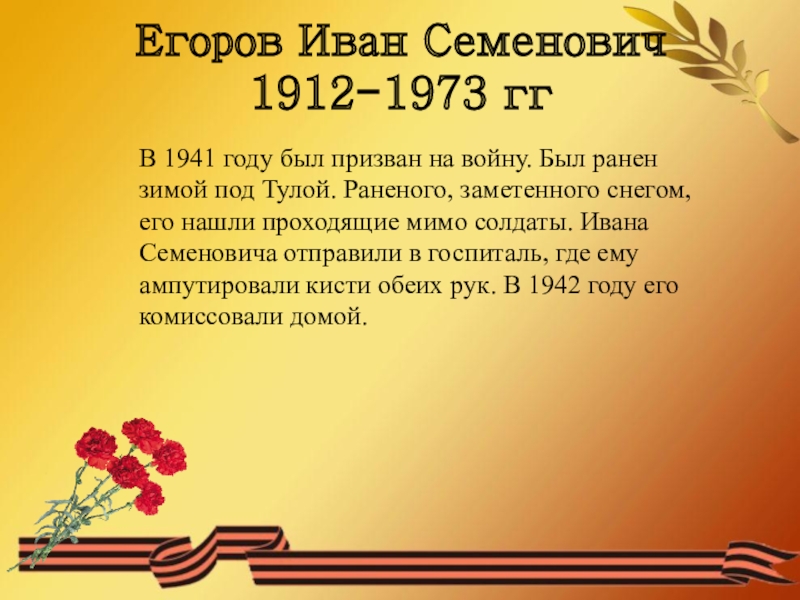В 1941 году был призван на войну. Был ранен зимой под Тулой. Раненого, заметенного снегом, его нашли проходящие мимо солдаты. Ивана Семеновича отправили в госпиталь, где ему ампутировали кисти обеих рук. В 1942 году его комиссовали домой.