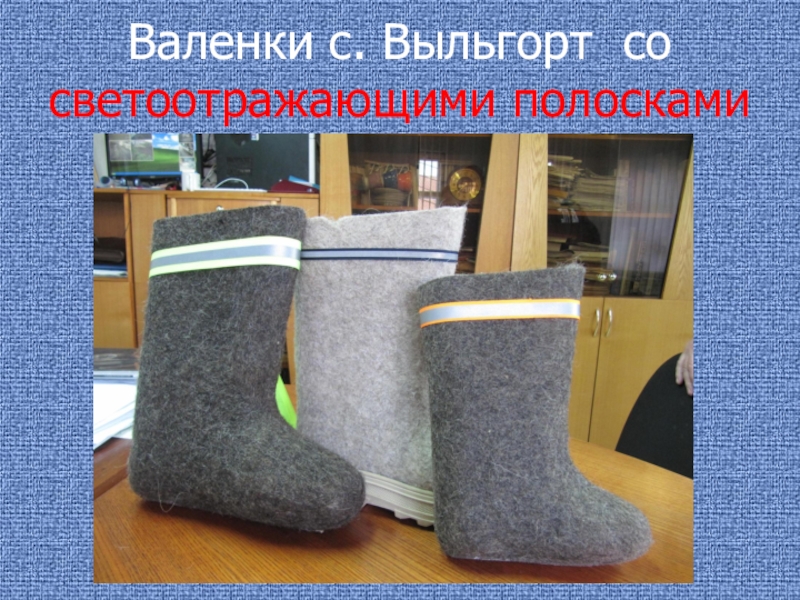 Слайд 52Валенки с. Выльгорт со светоотражающими полосками