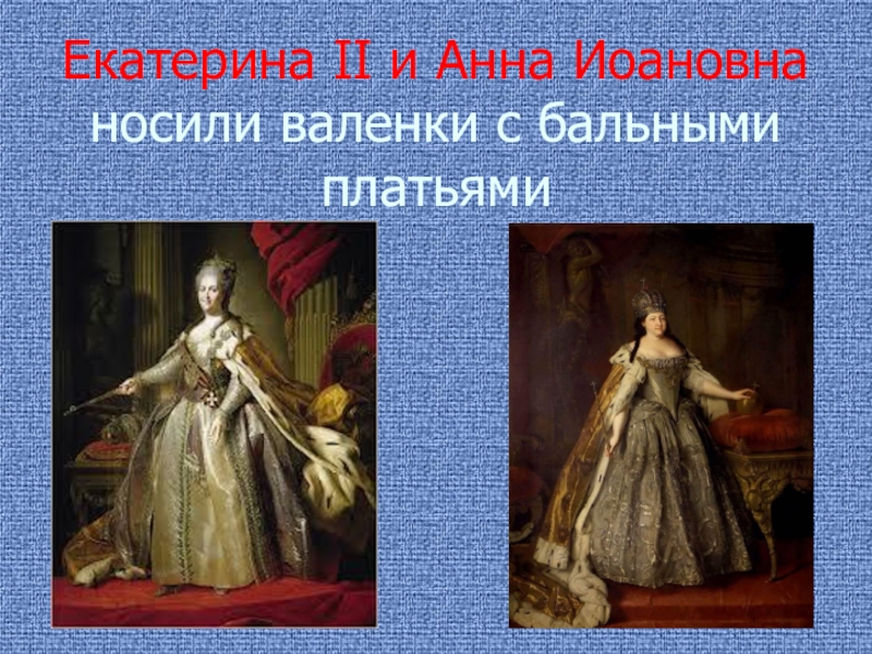 Екатерина II и Анна Иоановна носили валенки с бальными платьями