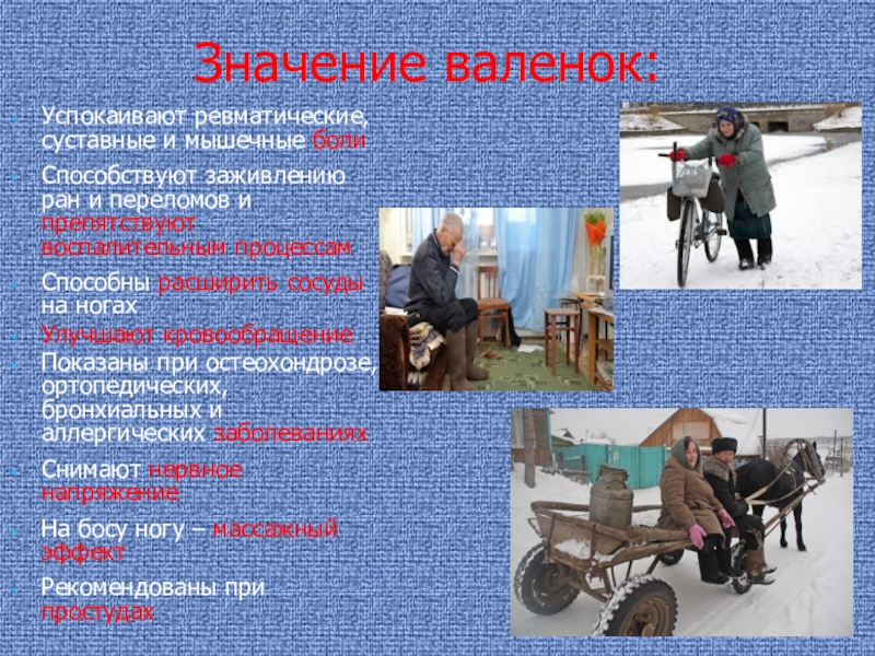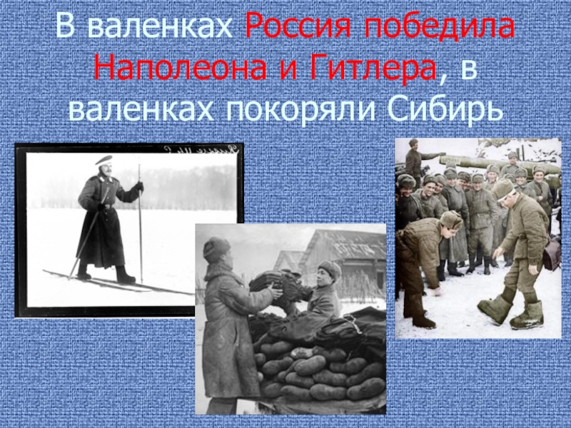 Слайд 15В валенках Россия победила Наполеона и Гитлера, в валенках покоряли Сибирь