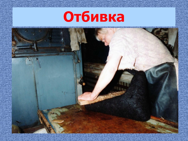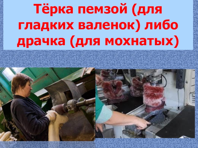 Слайд 33Тёрка пемзой (для гладких валенок) либо драчка (для мохнатых)