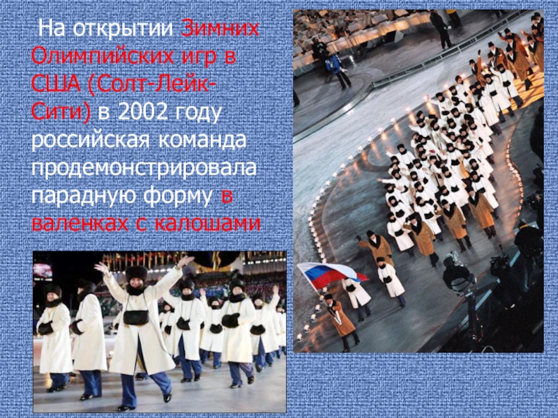 Слайд 58 На открытии Зимних Олимпийских игр в США (Солт-Лейк-Сити) в 2002 году