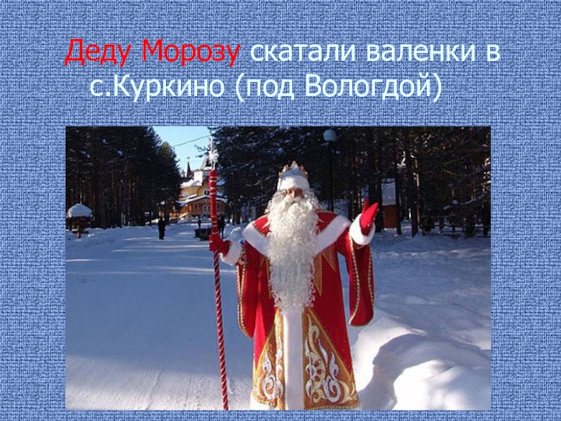 Слайд 60 Деду Морозу скатали валенки в с.Куркино (под Вологдой)