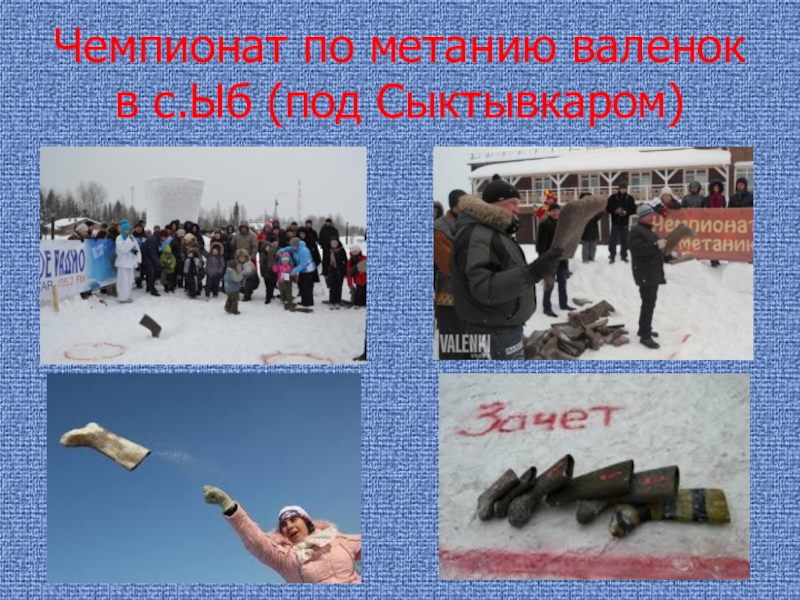 Слайд 56Чемпионат по метанию валенок в с.Ыб (под Сыктывкаром)