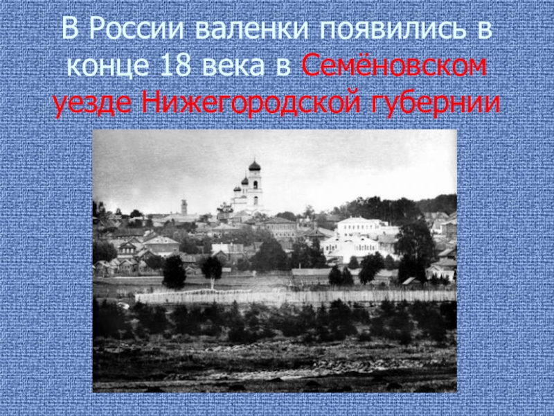 Слайд 12В России валенки появились в конце 18 века в Семёновском уезде