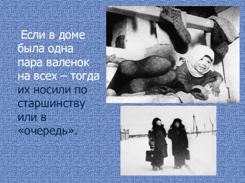 Слайд 16 Если в доме была одна пара валенок на всех – тогда