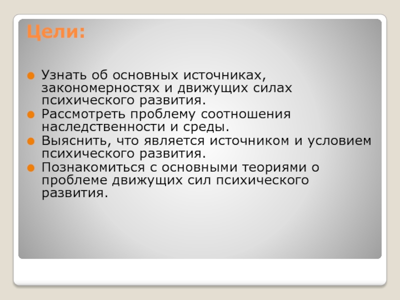 Узнать об основных источниках, закономерностях и движущих силах психического развития.