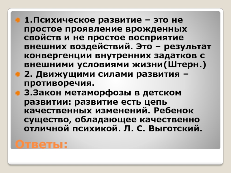 1.Психическое развитие – это не простое проявление врожденных свойств и не