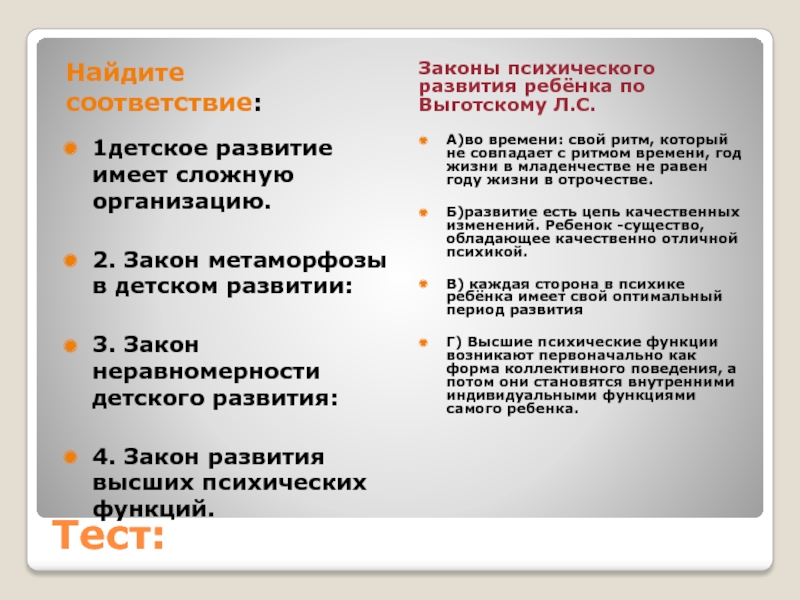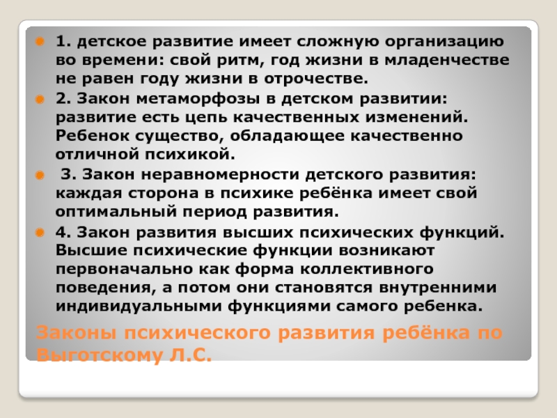 Слайд 9Законы психического развития ребёнка по Выготскому Л.С.