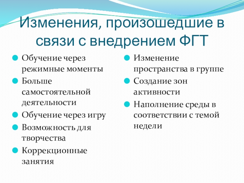 Слайд 4Изменения, произошедшие в связи с внедрением ФГТ