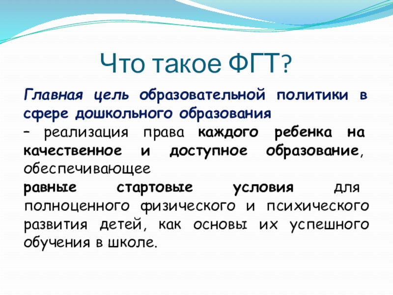 равные стартовые условия для полноценного физического и психического развития детей, как основы их успешного обучения в школе.