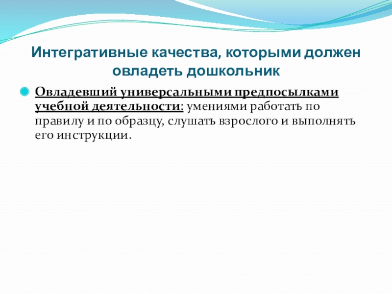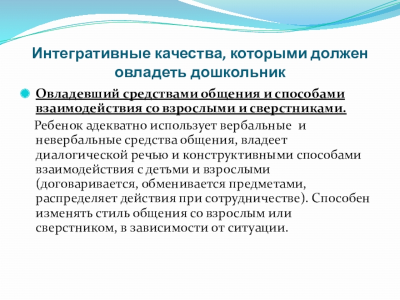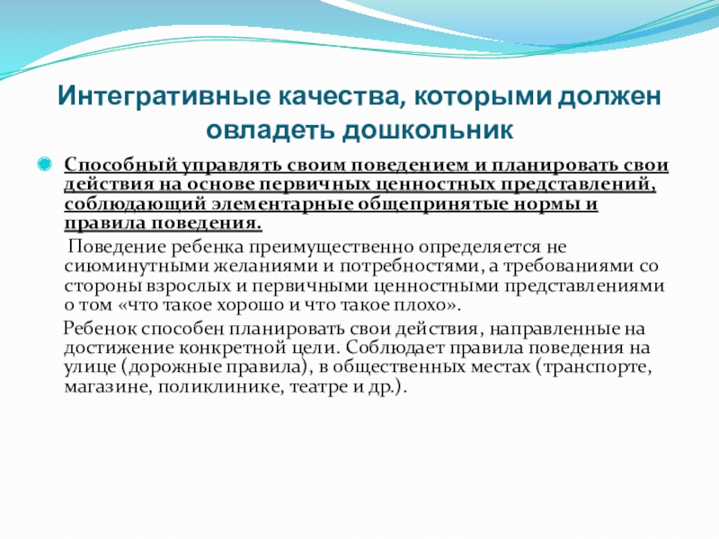 Слайд 20Интегративные качества, которыми должен овладеть дошкольник
