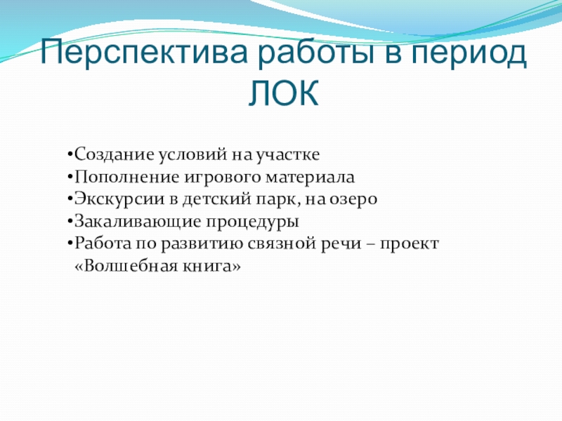 Оказать помощь в формировании среды для отдыха и развития детей в период ЛОК.