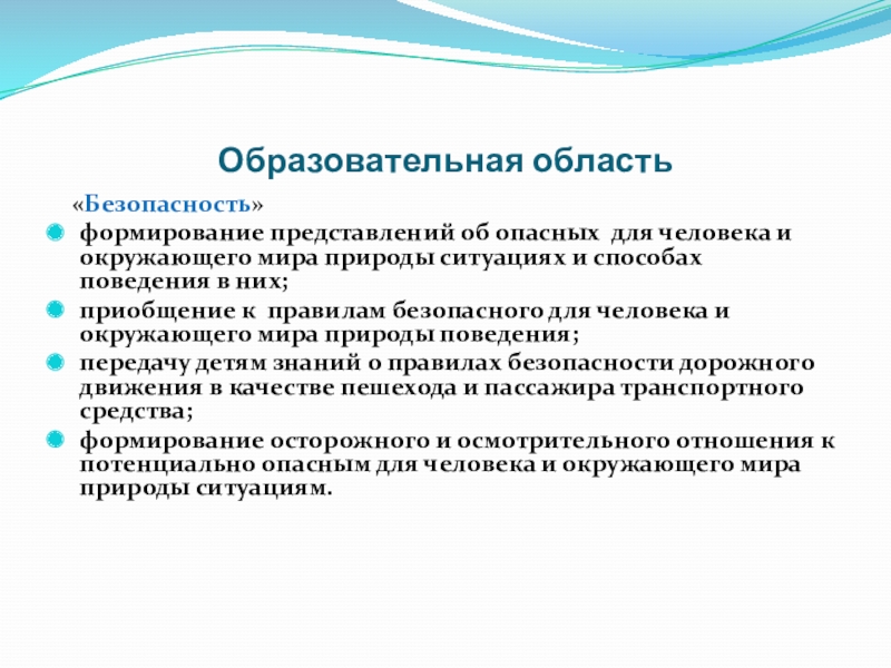 формирование осторожного и осмотрительного отношения к потенциально опасным для человека и окружающего мира природы ситуациям.