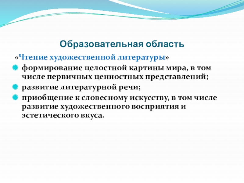 приобщение к словесному искусству, в том числе развитие художественного восприятия и эстетического вкуса.