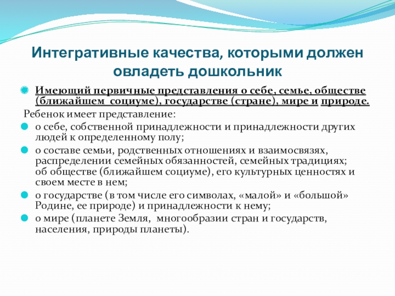 Слайд 21Интегративные качества, которыми должен овладеть дошкольник
