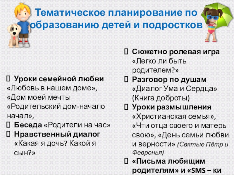 Уроки размышления «Христианская семья», «Чти отца своего и матерь свою», «День семьи любви и верности» (Святые Пётр и Февронья)