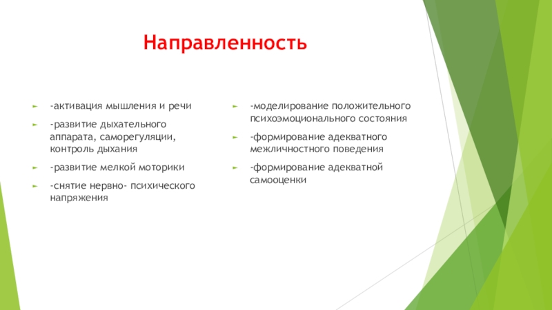 -развитие дыхательного аппарата, саморегуляции, контроль дыхания