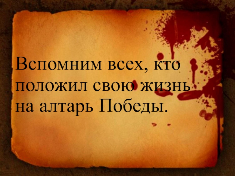 Слайд 10Вспомним всех, кто положил свою жизнь на алтарь Победы.