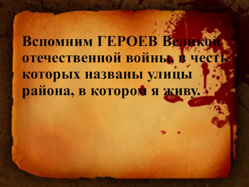 Вспомним ГЕРОЕВ Великой отечественной войны, в честь которых названы улицы района, в котором я живу.
