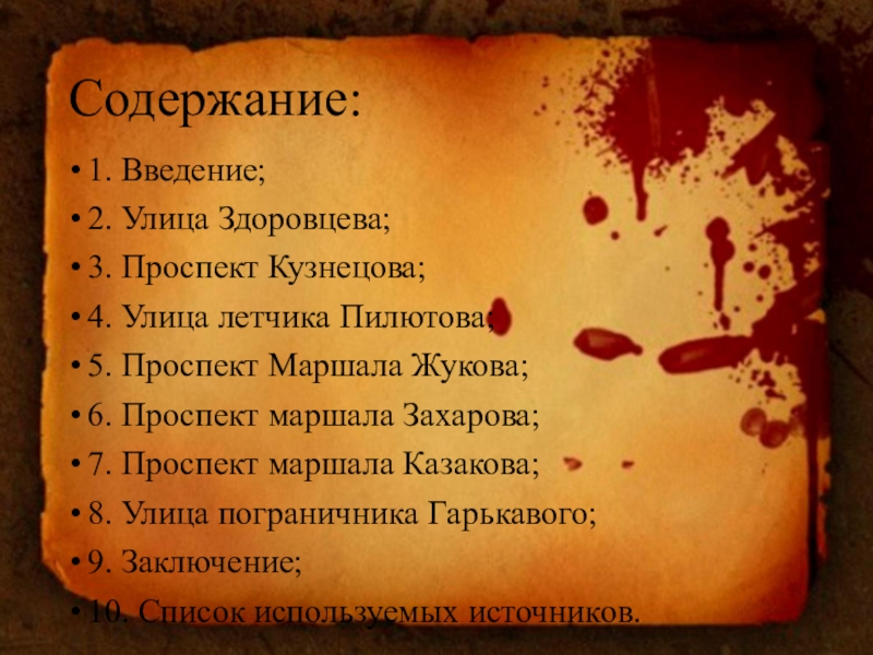 Содержание:1. Введение;2. Улица Здоровцева;3. Проспект Кузнецова;4. Улица летчика Пилютова;5. Проспект Маршала Жукова;6. Проспект маршала Захарова;7. Проспект маршала