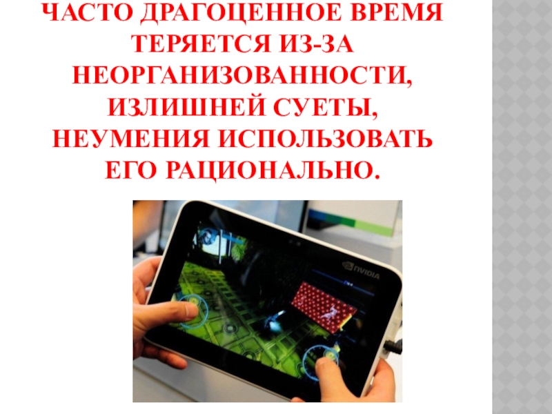 Слайд 3Часто драгоценное время теряется из-за неорганизованности, излишней суеты, неумения использовать его