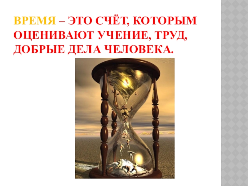 Слайд 2Время – это счёт, которым оценивают учение, труд, добрые дела человека.