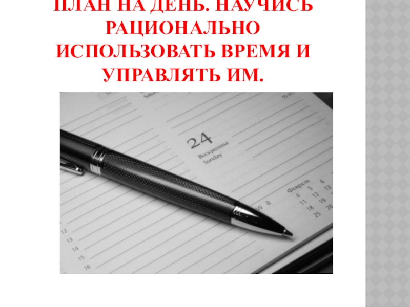 Слайд 11План на день. Научись рационально использовать время и управлять им.