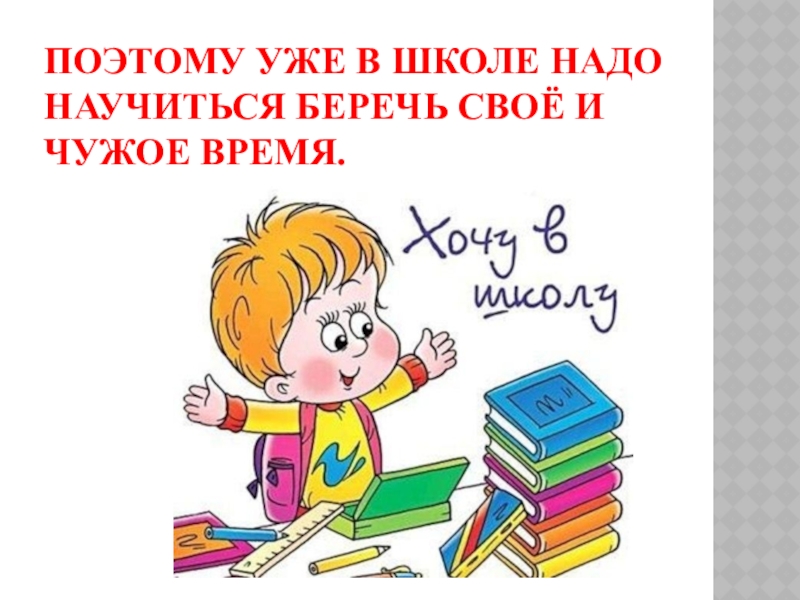 Слайд 4поэтому уже в школе надо научиться беречь своё и чужое время.