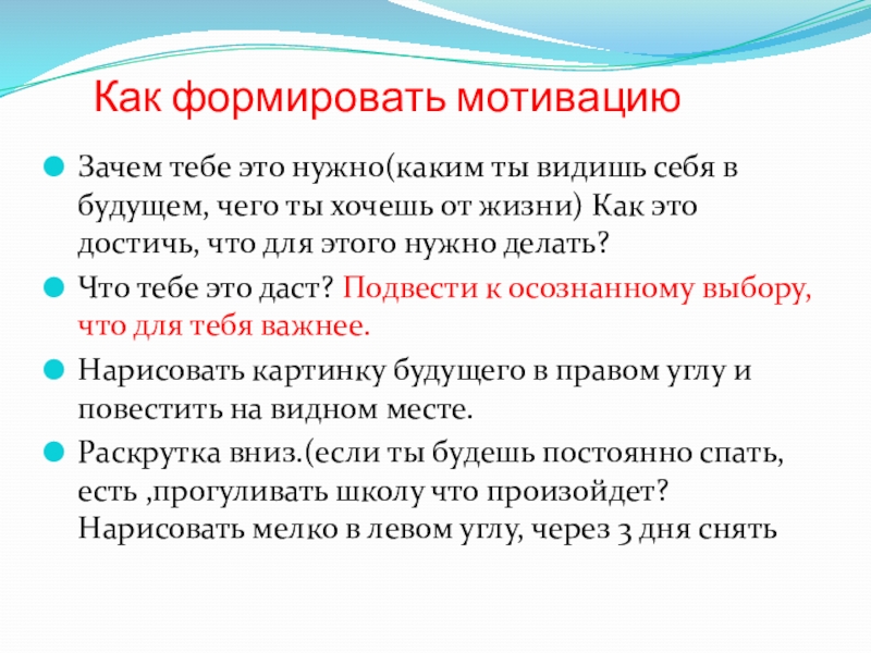 Как формировать мотивациюЗачем тебе это нужно(каким ты видишь себя в будущем, чего ты хочешь