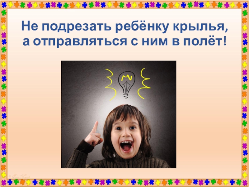 Слайд 17Не подрезать ребёнку крылья, а отправляться с ним в полёт!