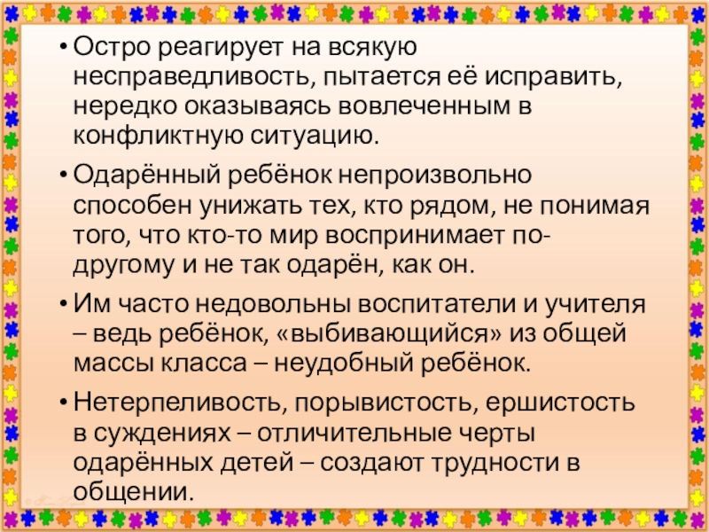 Нетерпеливость, порывистость, ершистость в суждениях – отличительные черты одарённых детей – создают трудности в общении.