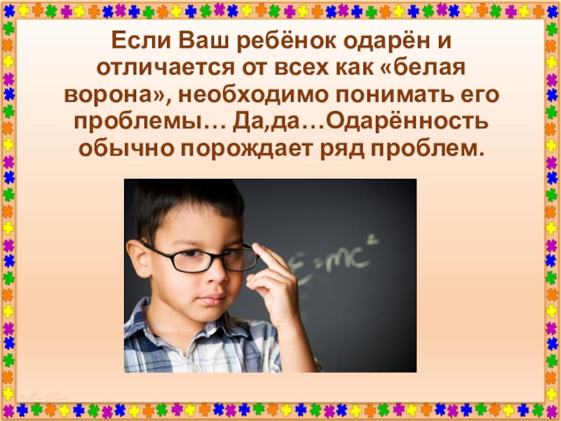 Слайд 5Если Ваш ребёнок одарён и отличается от всех как «белая ворона»,