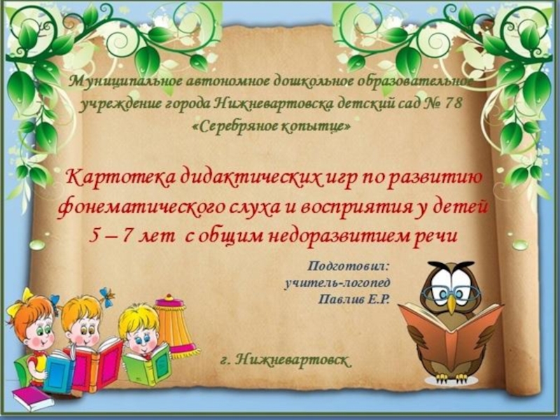 Презентация, доклад на тему Картотека дидактических игр по развитию фонематического слуха и восприятия у детей 5 - 7 лет с общим недоразвитием речи