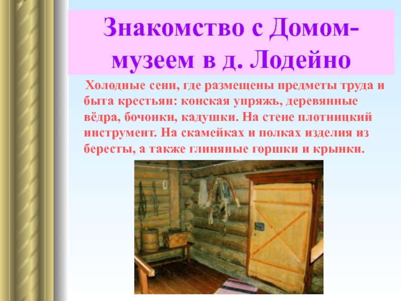Слайд 9Знакомство с Домом-музеем в д. Лодейно
