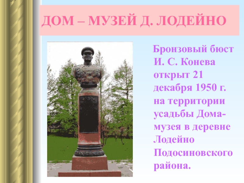 Слайд 8ДОМ – МУЗЕЙ Д. ЛОДЕЙНО