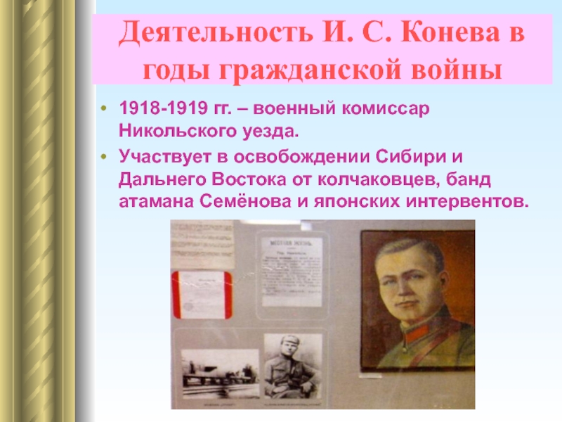 Слайд 12Деятельность И. С. Конева в годы гражданской войны