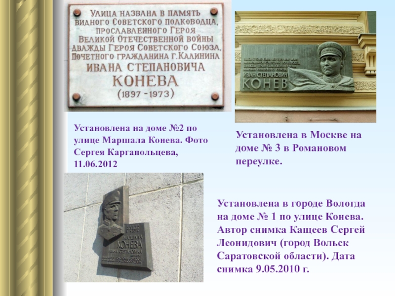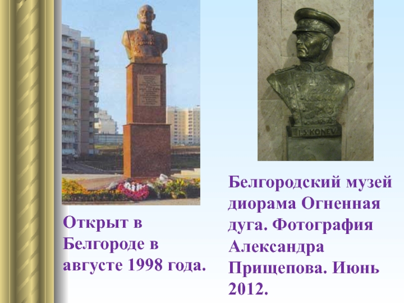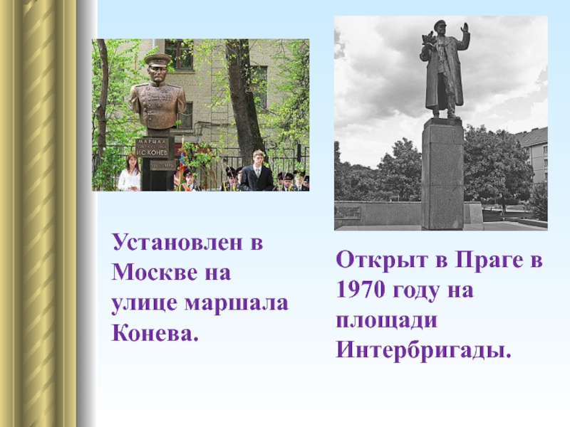 Слайд 22Установлен в Москве на улице маршала Конева.