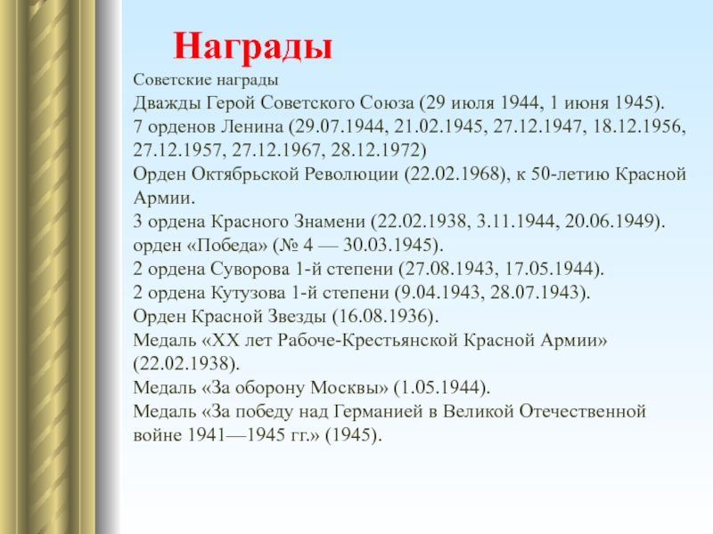 Маршал Советского СоюзаМаршал Советского Союза — с 20 февраля 1944 года.