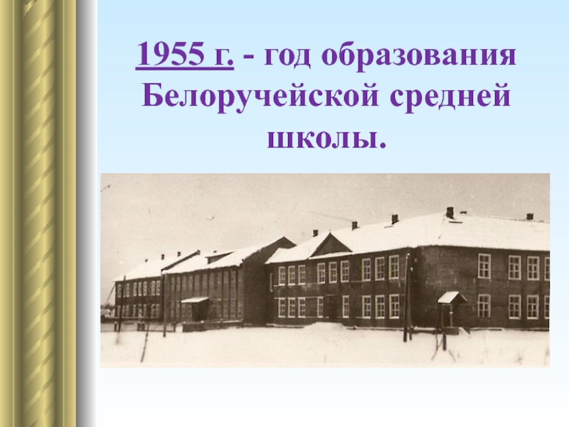 Слайд 241955 г. - год образования Белоручейской средней школы.