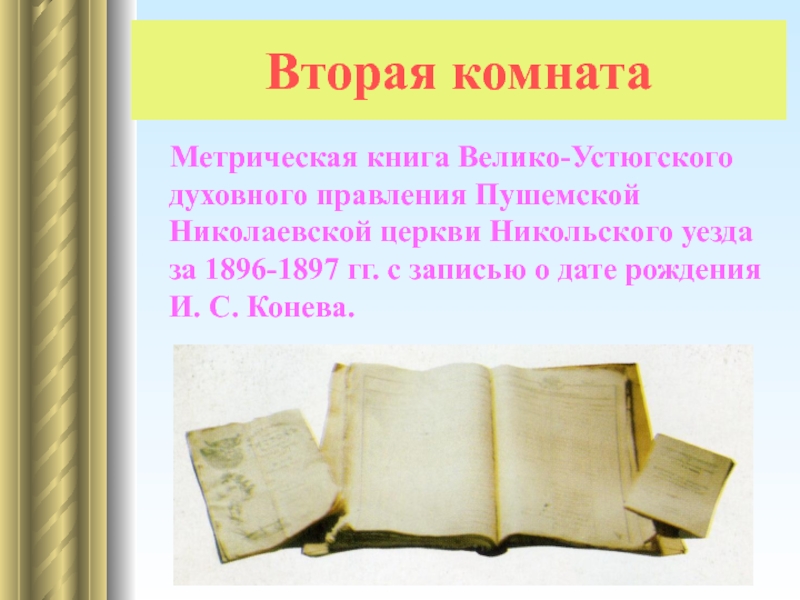 Никольского уезда за 1896-1897 гг. с записью о дате рождения И. С. Конева.