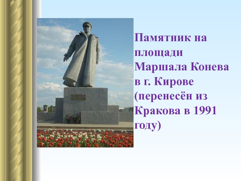 Слайд 19Памятник на площади Маршала Конева в г. Кирове (перенесён из Кракова