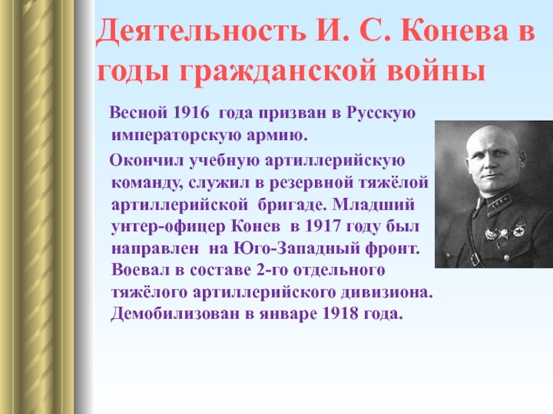 Слайд 13Деятельность И. С. Конева в годы гражданской войны