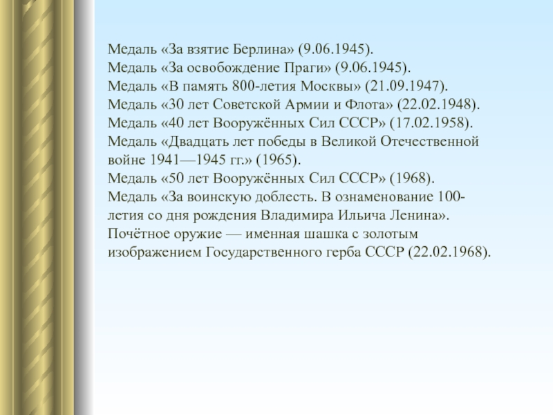 Слайд 18Медаль «За взятие Берлина» (9.06.1945).