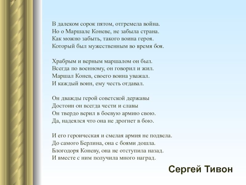 Слайд 26 В далеком сорок пятом, отгремела война.