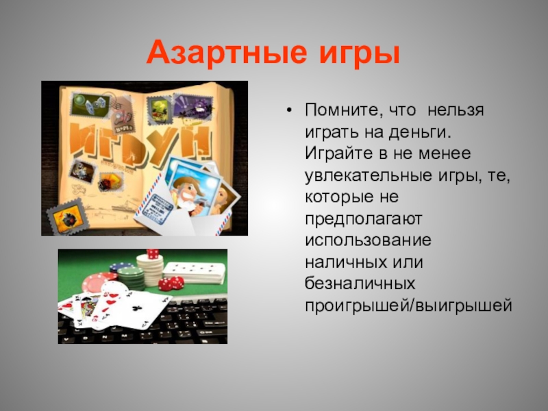 Слайд 8В отличие от игровых сайтов, сайты с азартными играми могут допускать,